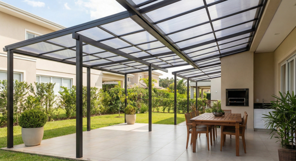 Executamos coberturas resistentes e funcionais, com materiais de qualidade, ideais para garagens, áreas gourmet, corredores e espaços comerciais.