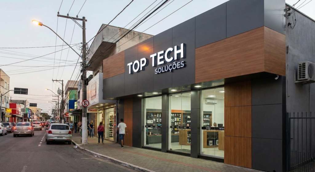 Criamos fachadas em ACM modernas e elegantes, que valorizam sua marca, transmitem profissionalismo e destacam seu comércio.